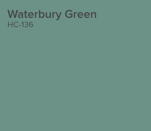 Turquoise color: Benjamin Moore – Waterbury Green (HC-136)
